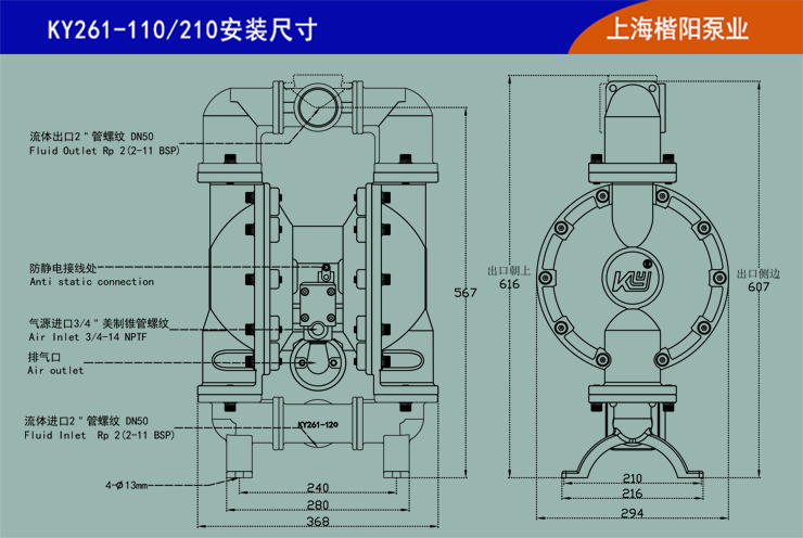 KY261-120不銹鋼304氣動隔膜泵和KY261-220不銹鋼316L氣動隔膜泵是上海楷陽泵業(yè)的高端產(chǎn)品之一,自吸能力和流量輸送能力極強:干吸可以達到5米垂直高度,濕吸8-10米垂直高度,在工作壓力8公斤時還可以保證足夠流量輸出。