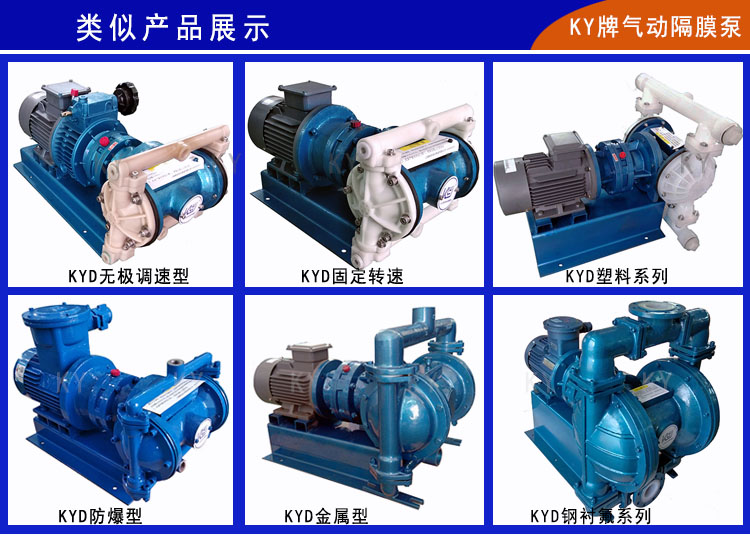 KYD型鋼襯特氟龍電動(dòng)隔膜泵是上海楷陽泵業(yè)開發(fā)的最新一代電動(dòng)隔膜泵,整機(jī)由西門子貝德電機(jī)、擺針式減速機(jī)、聯(lián)軸器和泵頭組成。上海楷陽鋼襯特氟龍電動(dòng)隔膜泵以優(yōu)質(zhì)HT200鑄鐵為外殼,具有良好的物理性能,以F46聚全氟乙丙烯為內(nèi)襯材料;膜片采用耐腐蝕強(qiáng)彈性好的特氟龍F(tuán)46或者進(jìn)口特氟龍材質(zhì),可適用于除熔融態(tài)堿鹽以外的任何酸、堿及各類有機(jī)溶劑,應(yīng)用范圍極其廣泛。楷陽新一代dby電動(dòng)隔膜泵耐酸堿性能特別優(yōu)秀,具有結(jié)構(gòu)美觀,良好的物理抗性,經(jīng)久耐用等特點(diǎn),被譽(yù)為電動(dòng)耐酸堿隔膜泵產(chǎn)品。