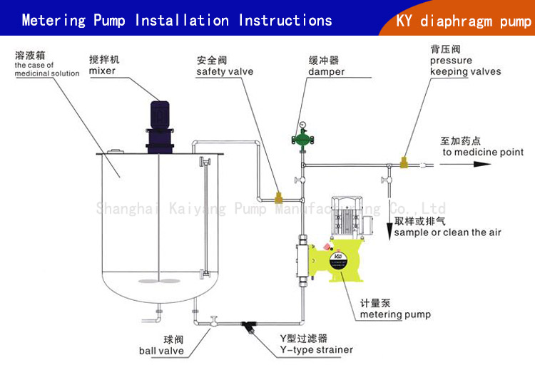 三、計量加藥泵的排液端裝有截止閥時,如果關閉截止閥,電磁隔膜計量泵運行產生的背壓可能是最大允背壓的幾倍,由此可能導致排液管線破裂,為了防止這種情況的發生,建議選用一個溢流閥將最大背壓限制在允許值以內。