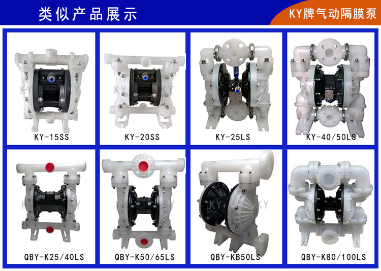 KY-20SS型工程塑料氣動(dòng)隔膜泵是參照歐美標(biāo)準(zhǔn)自主研發(fā)的新一代、高效率、輕便、安全的耐腐蝕氣動(dòng)隔膜泵。產(chǎn)品馬達(dá)端中間體采用耐腐蝕工程塑料材質(zhì),防止使用環(huán)境中帶有腐蝕性介質(zhì)造成的馬達(dá)損壞,KY牌工程塑料氣動(dòng)隔膜泵采用全新的工業(yè)設(shè)計(jì),絕對無死機(jī),泵殼和中間馬達(dá)體全部采用優(yōu)質(zhì)工程塑料材料,進(jìn)出口采用三進(jìn)三出,方便使用安裝。